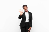 Zdjęcie "młoda kobieta african amerykański uśmiech, uczucie szczęśliwy, pozytywny i zadowolony, trzymając lub pokazując obiekt lub koncepcję na przestrzeni kopii o płaską ścianę" może być wykorzystywane do celów osobistych i komercyjnych zgodnie z warunkami zakupionej licencji Royalty-free. Obraz jest dostępny do pobrania w jakości wysokiej rozdzielczości do 5760x3840.
