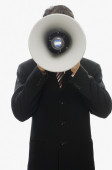 Zdjęcie "biznesmen posiadania megafon przed jego twarz" może być wykorzystywane do celów osobistych i komercyjnych zgodnie z warunkami zakupionej licencji Royalty-free. Obraz jest dostępny do pobrania w jakości wysokiej rozdzielczości do 5760x3840.