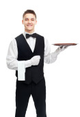 Zdjęcie "młody kelner z butelką wina na tacy" może być wykorzystywane do celów osobistych i komercyjnych zgodnie z warunkami zakupionej licencji Royalty-free. Obraz jest dostępny do pobrania w jakości wysokiej rozdzielczości do 5760x3840.