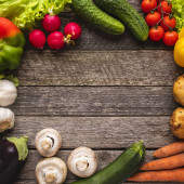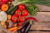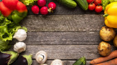 Tło warzyw z miejscem na tekst. Warzywa na tle rustykalnym