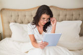 Koncentrat ładna kobieta przy użyciu komputera typu tablet