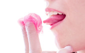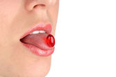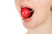 Zdjęcie "Dziewczyna liże czerwony, okrągły lizak językiem. Zamknij drzwi. Ja..." może być wykorzystywane do celów osobistych i komercyjnych zgodnie z warunkami zakupionej licencji Royalty-free. Obraz jest dostępny do pobrania w jakości wysokiej rozdzielczości do 5760x3840.
