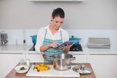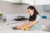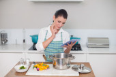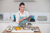 uśmiechający się ładny kobieta sobie fartuch tekstylny