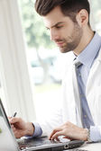 Zdjęcie "młody lekarz za pomocą laptopa" może być wykorzystywane do celów osobistych i komercyjnych zgodnie z warunkami zakupionej licencji Royalty-free. Obraz jest dostępny do pobrania w jakości wysokiej rozdzielczości do 5760x3840.