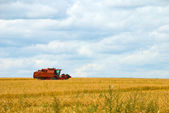 Nowoczesny kombajn zbożowy w akcji. Urządzenia do zbioru ziarna i
