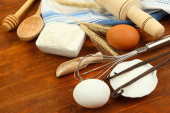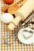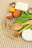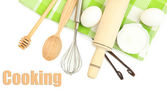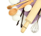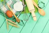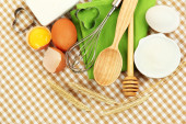gotowania. podstawowych składników pieczenia i naczynia kuchenne na obrus tło