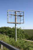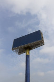 Instalacja dużego billboardu na autostradzie, z dźwigiem. Pracownicy instalujący billboard reklamowy.