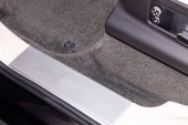 Czyste maty podłogowe samochodu z czarnej gumy pod siedzeniem pasażera w