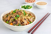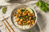 Zdjęcie "Smażony tajski kurczak z bazylii podawany z cytryną i liśćmi bazylii Top View Photo." może być wykorzystywane do celów osobistych i komercyjnych zgodnie z warunkami zakupionej licencji Royalty-free. Obraz jest dostępny do pobrania w jakości wysokiej rozdzielczości do 5760x3840.