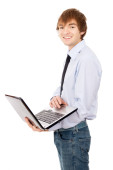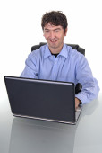 młody biznesmen dorosły siedzi z zamkniętym laptopie