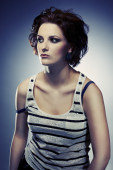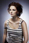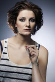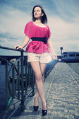 dziewczyna pozuje w pobliżu starego zamku