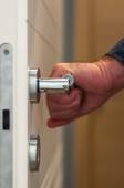 Selektywne skupienie ręki na klamkach ze stali nierdzewnej