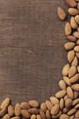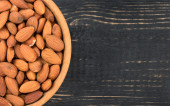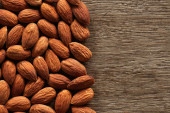 Widok z góry naturalnych orzechów migdałowych na drewnianym tle