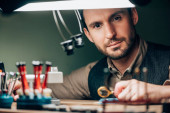 Zdjęcie "Selektywne skupienie zegarmistrza pracującego z częściami zegarka w zasobniku na narzędzia przy stole" może być wykorzystywane do celów osobistych i komercyjnych zgodnie z warunkami zakupionej licencji Royalty-free. Obraz jest dostępny do pobrania w jakości wysokiej rozdzielczości do 5760x3840.