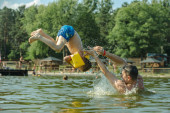 Zdjęcie "młodzi ludzie przejść i pluskać się w jeziorze" może być wykorzystywane do celów osobistych i komercyjnych zgodnie z warunkami zakupionej licencji Royalty-free. Obraz jest dostępny do pobrania w jakości wysokiej rozdzielczości do 5760x3840.