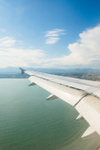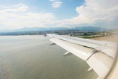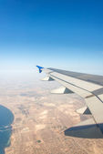 Skrzydło samolotu przez okno
