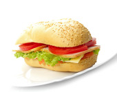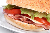 duża kanapka na białym talerzu