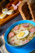 Zdjęcie "Wielkanoc po polsku: zupa z kwaśnej mąki na śniadanie wielkanocne" może być wykorzystywane do celów osobistych i komercyjnych zgodnie z warunkami zakupionej licencji Royalty-free. Obraz jest dostępny do pobrania w jakości wysokiej rozdzielczości do 5760x3840.