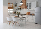 Piękne wnętrze kuchni z nowych stylowych mebli