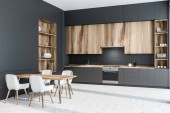Zdjęcie "Wnętrza kuchnia blaty szare i tabeli" może być wykorzystywane do celów osobistych i komercyjnych zgodnie z warunkami zakupionej licencji Royalty-free. Obraz jest dostępny do pobrania w jakości wysokiej rozdzielczości do 5760x3840.