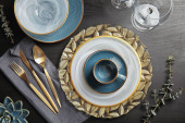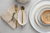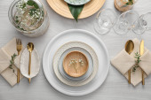 Elegancka oprawa świąteczna na białym drewnianym stole, płaska leżanka