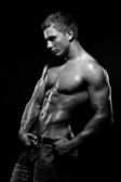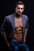 mięśni sexy nago młody człowiek pozowanie w dżinsach
