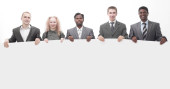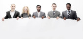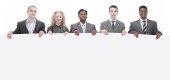 Grupa młodych uśmiechający się ludzie biznesu. na tle