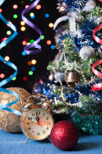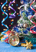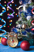 zegar, Boże Narodzenie koraliki na tle choinki zdobione
