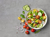 Zdjęcie "Grecka sałatka ze świeżymi warzywami, serem feta i czarnymi oliwkami" może być wykorzystywane do celów osobistych i komercyjnych zgodnie z warunkami zakupionej licencji Royalty-free. Obraz jest dostępny do pobrania w jakości wysokiej rozdzielczości do 5760x3840.