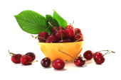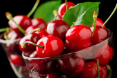 owoców wiśni w szklanym wazonie na przezroczystym tle światła