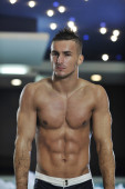 atrakcyjny młody człowiek w saunie
