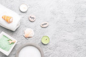 obiekty spa. Świece, mydło, muszle, kamienie, sole trzeźwiące. Ręcznik i muszle