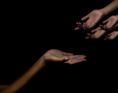 Dłonie kobiety cierpiącej na zespół Parkinsona na ciemnym tle