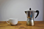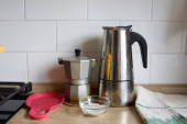 Metalowy czajnik elektryczny na białym kafelku ściany