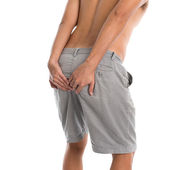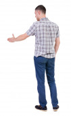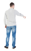 widok z tyłu azjatycki człowiek dotykając przejrzysty ekran wirtualny