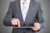 Zdjęcie "Biznesmen trzymający tablet" może być wykorzystywane do celów osobistych i komercyjnych zgodnie z warunkami zakupionej licencji Royalty-free. Obraz jest dostępny do pobrania w jakości wysokiej rozdzielczości do 5760x3840.