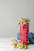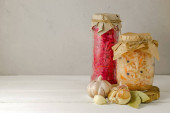 Zdjęcie "Sfermentowana koncept żywności wegetariańskiej. Domowej roboty marynowana kapusta z czosnkiem i pieprzem, kiszona kapusta na białym tle. przestrzeń kopiowania." może być wykorzystywane do celów osobistych i komercyjnych zgodnie z warunkami zakupionej licencji Royalty-free. Obraz jest dostępny do pobrania w jakości wysokiej rozdzielczości do 5760x3840.