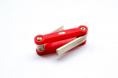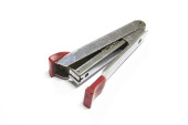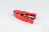 na białym tle zszywacz czarny i czerwony zszywacz ze zszywkami