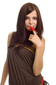 Seksowny brunetka modelu leżącego