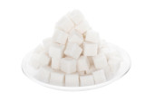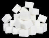 kostki cukru leżą na koła i cukier na patyku na kupie cukru pudru wewnątrz