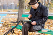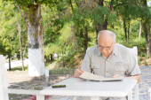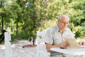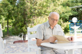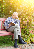 starszy amputacji korzystających z jego książki w promieniach słońca