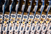 Przekładnia, wał napędowy łańcuchowy w przenośniku, taśma jest na linii produkcyjnej.
