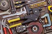 Zdjęcie "Różne narzędzia do naprawy gospodarstw domowych na brązowej drewnianej powierzchni z przestrzenią do kopiowania. Koncepcja remontu domu. Zdjęcia studyjne." może być wykorzystywane do celów osobistych i komercyjnych zgodnie z warunkami zakupionej licencji Royalty-free. Obraz jest dostępny do pobrania w jakości wysokiej rozdzielczości do 5760x3840.
