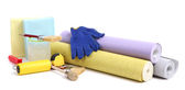 tapeta i akcesoria do kleju tapety, na białym tle