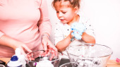 Matka dotykając nosa córki podczas gotowania w kuchni