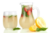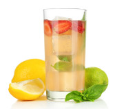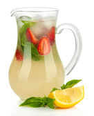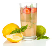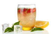 bazylia lemoniady z truskawkami w szkle, na białym tle