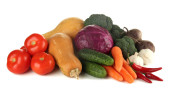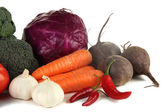 Kompozycja różnych warzyw na białym tle