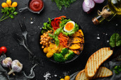 Zdjęcie "Sałatka z małżami, grejpfrutami i warzywami. Widok góry. Wolne miejsce na tekst." może być wykorzystywane do celów osobistych i komercyjnych zgodnie z warunkami zakupionej licencji Royalty-free. Obraz jest dostępny do pobrania w jakości wysokiej rozdzielczości do 5760x3840.