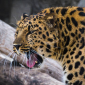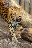 Jaguar pokazuje język - duże, piękne, niebezpieczne zwierzę.