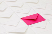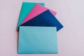 Kolorowe koperty papierowe na jasnym tle. Nowa poczta, napisz wiadomość. Wysyłaj i otrzymuj listy. Poczta. Pusta koperta, puste miejsce. Komunikacja, papierkowa robota. Zbliżenie koperty
